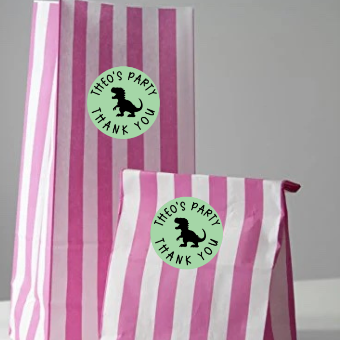 Make your party favours roar with these brilliant dinosaur thank you stickers! Choose between 24 smaller 1.5" stickers or 12 larger 2" stickers, both printed on premium glossy paper that really makes those dino designs pop. Perfect for sealing party bags, decorating gifts, or adding a fun finishing touch to your celebration. Your guests will love the playful prehistoric touch!