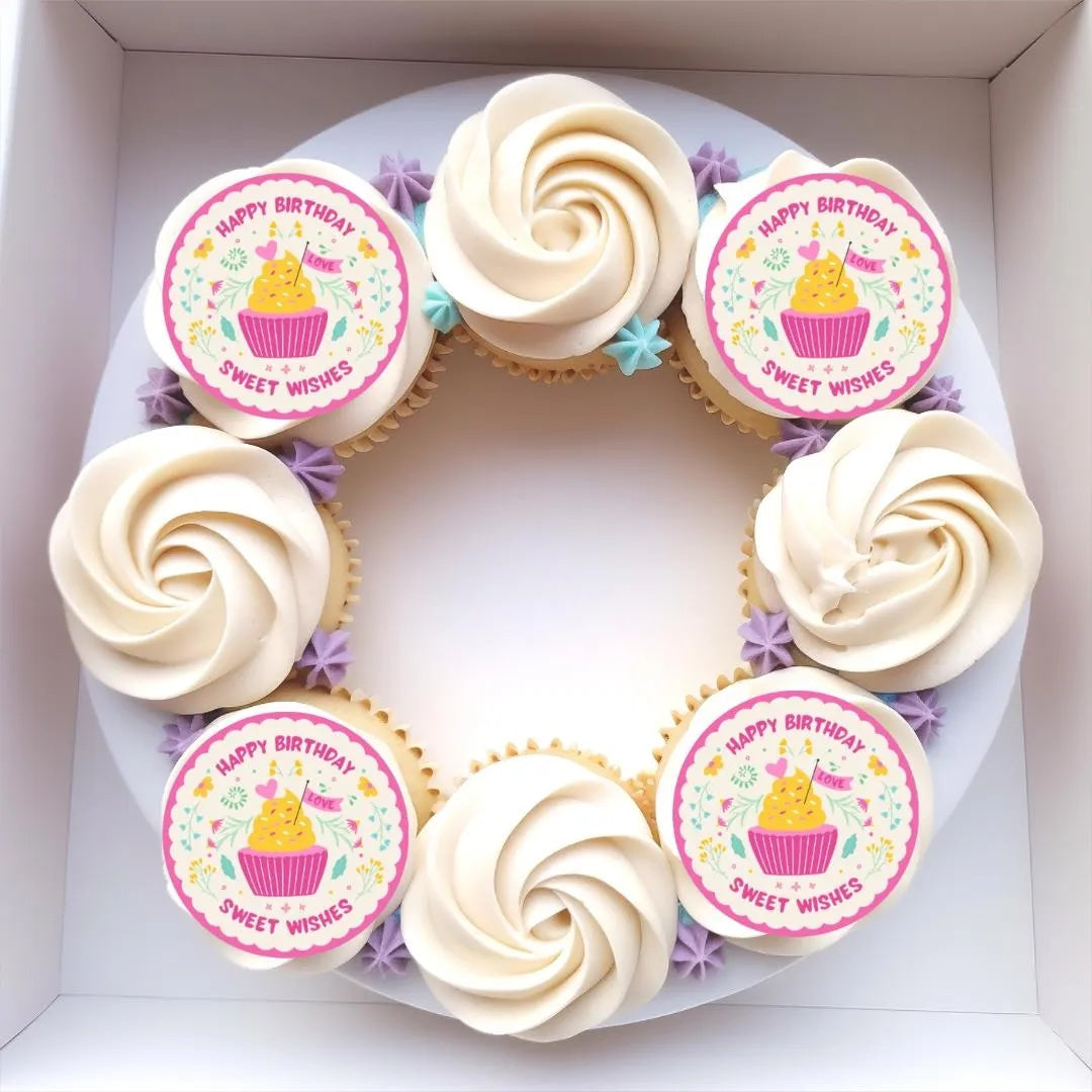 Happy Birthday Sweet Wishes Edible Cupcake or Drinks Topper