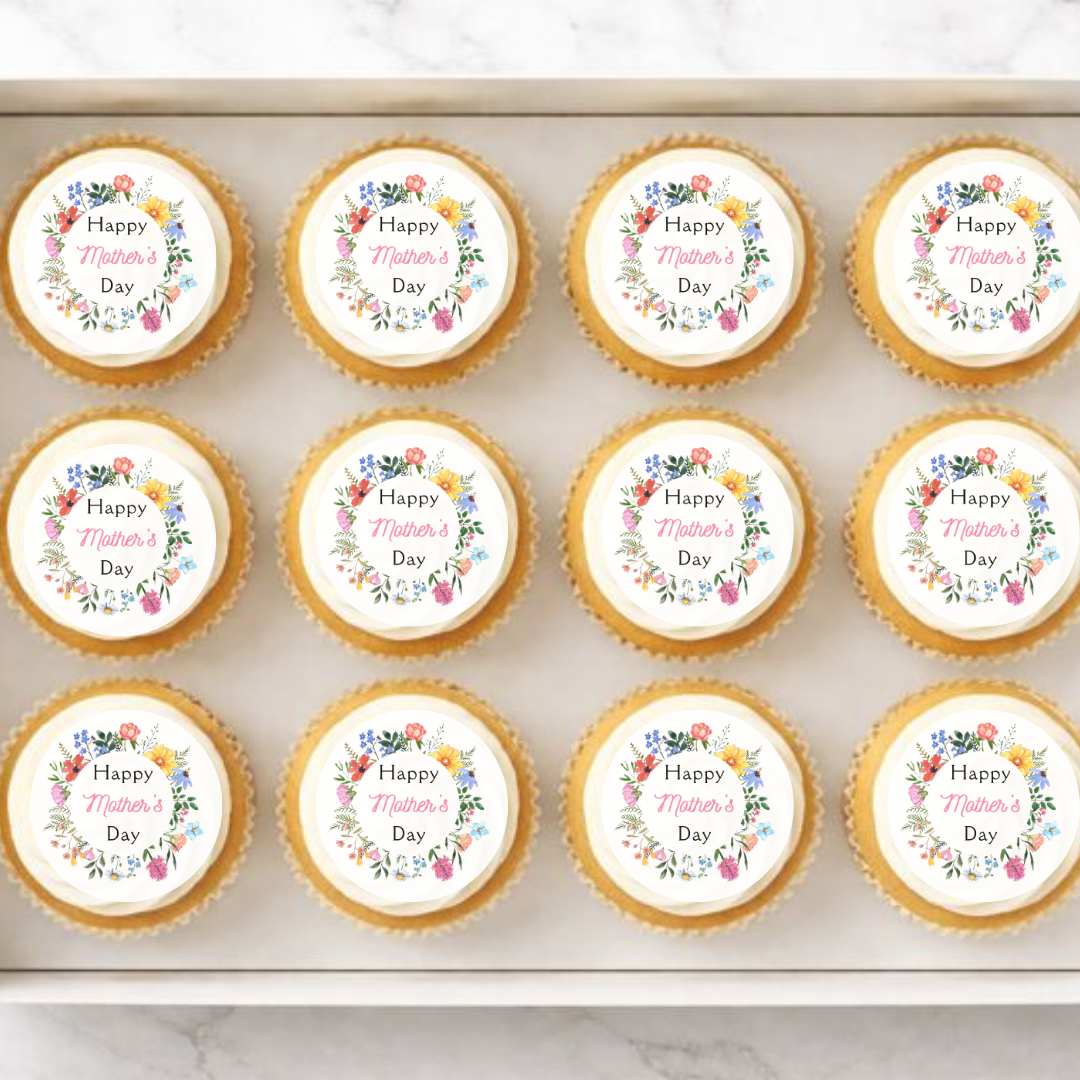 Happy Mothers Day Floral Wreath Edible Cupcake Toppers